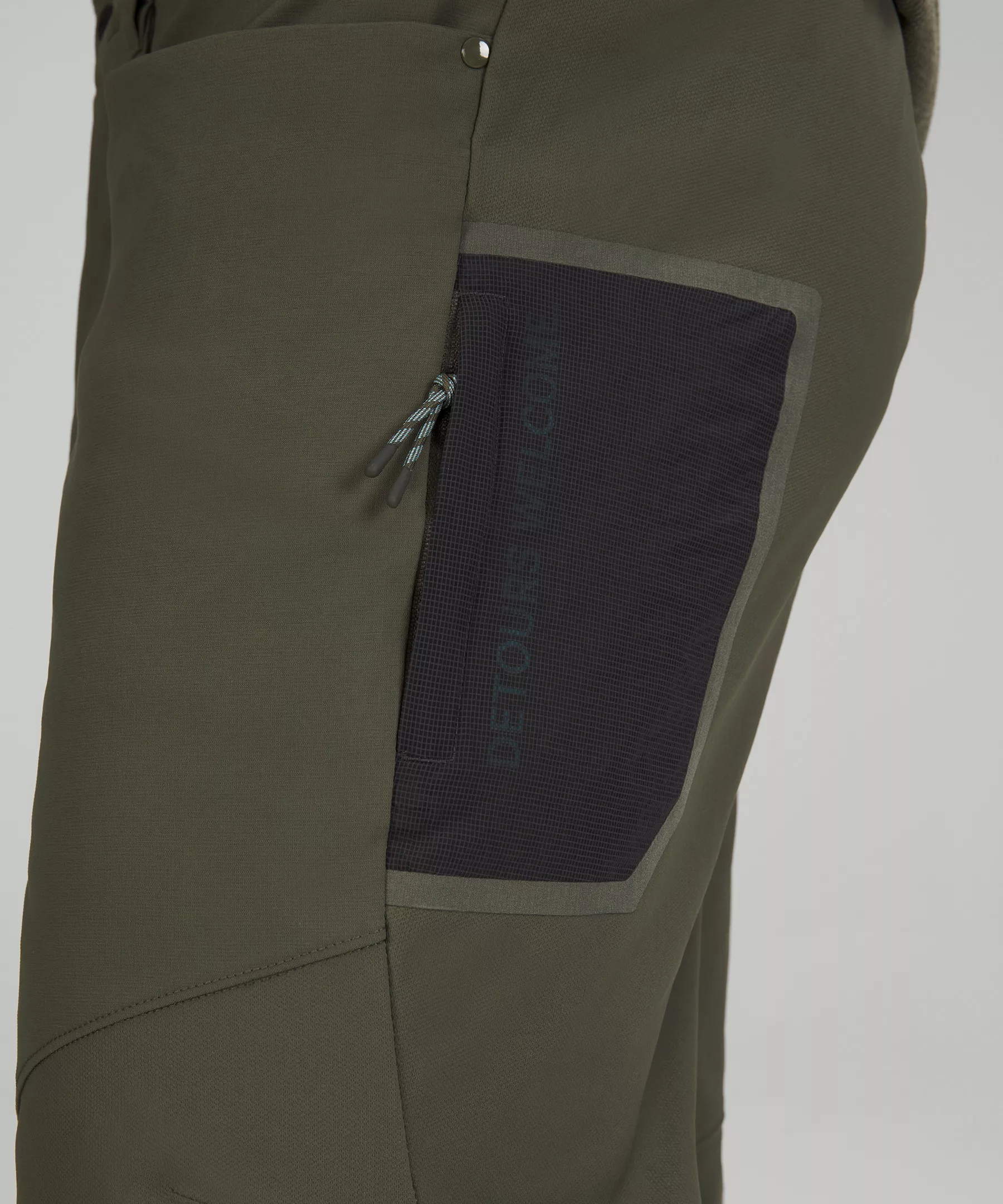- Small zippered pocket on the thigh