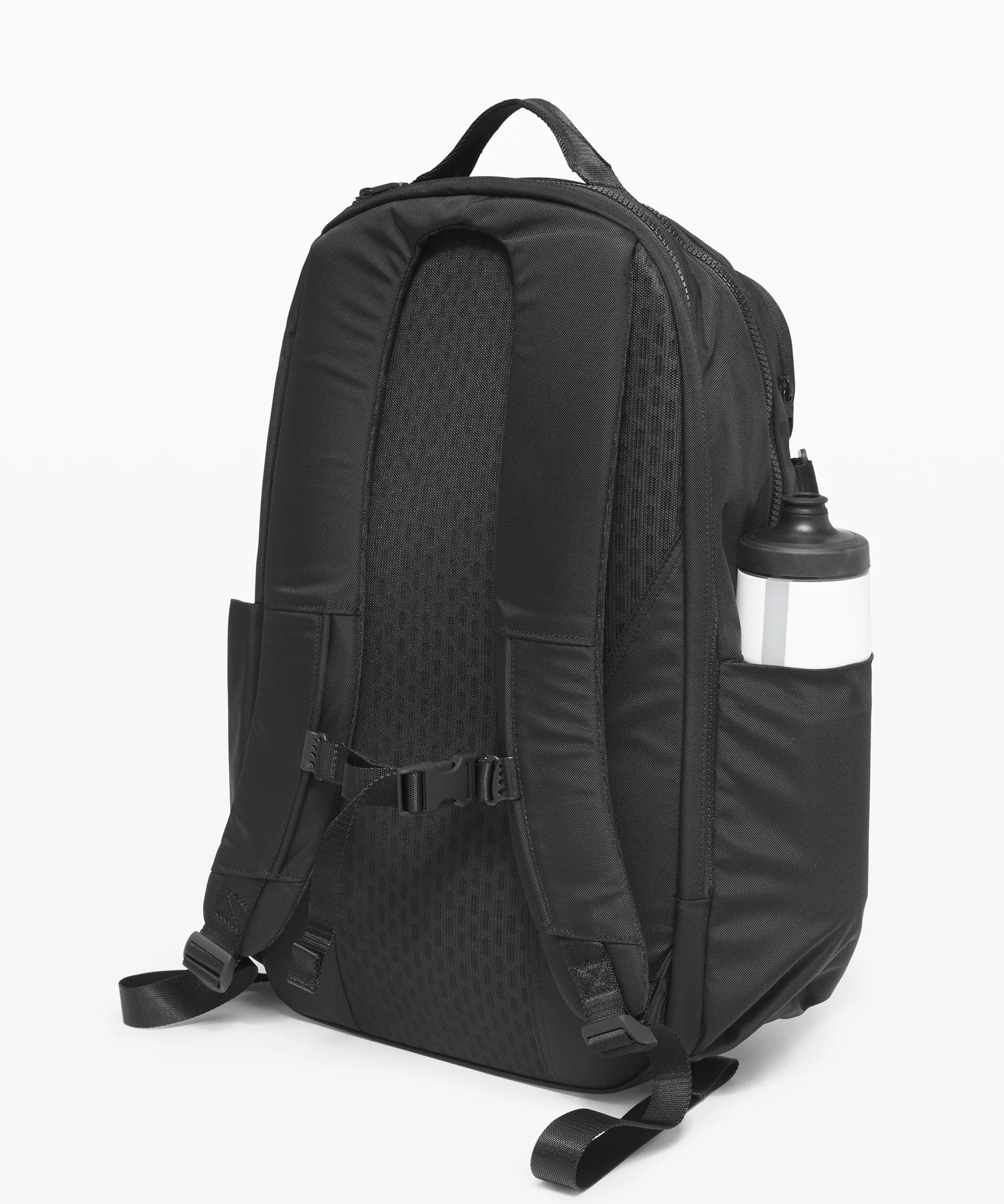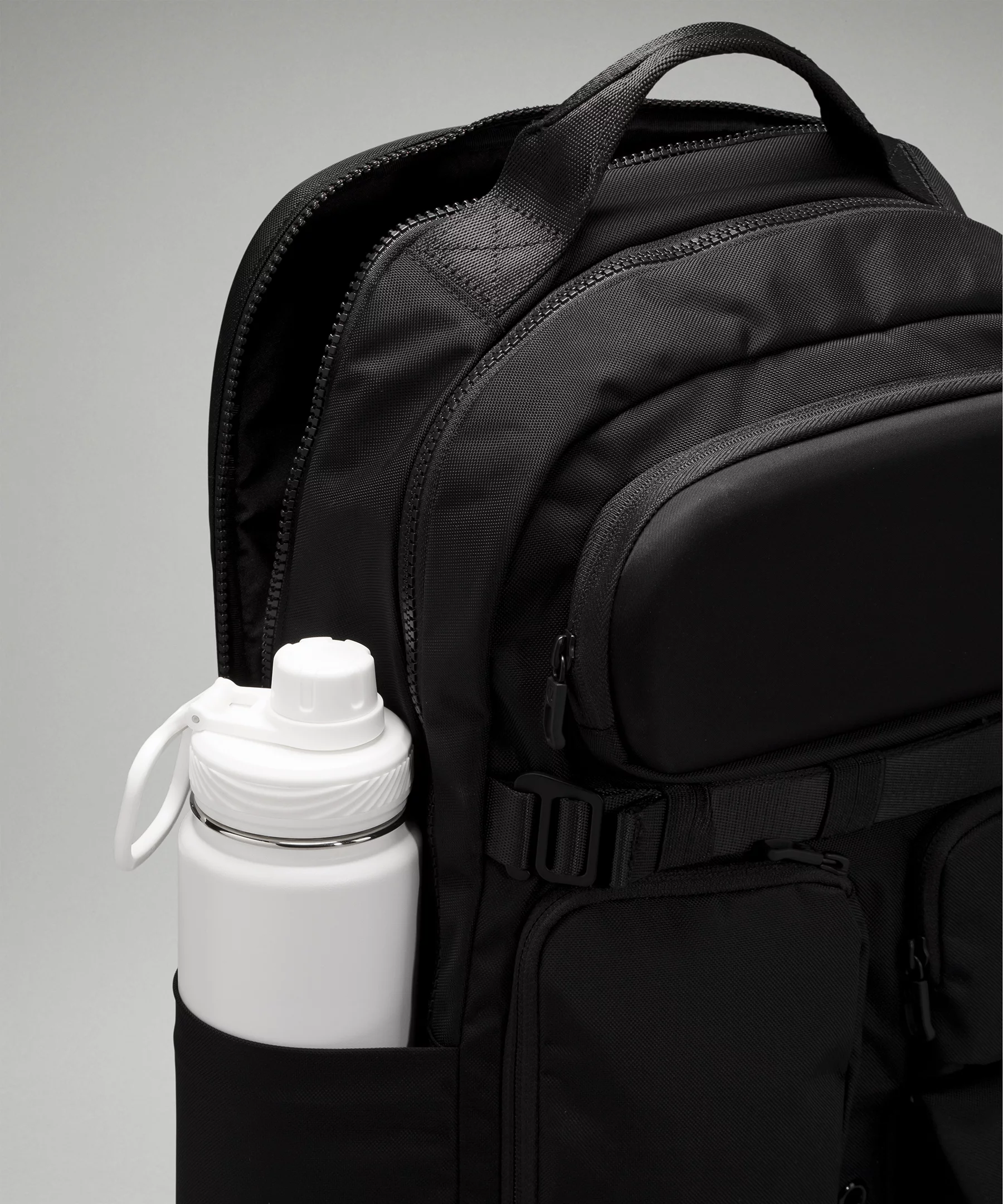 - Secure a yoga mat with the stowable strap and basket