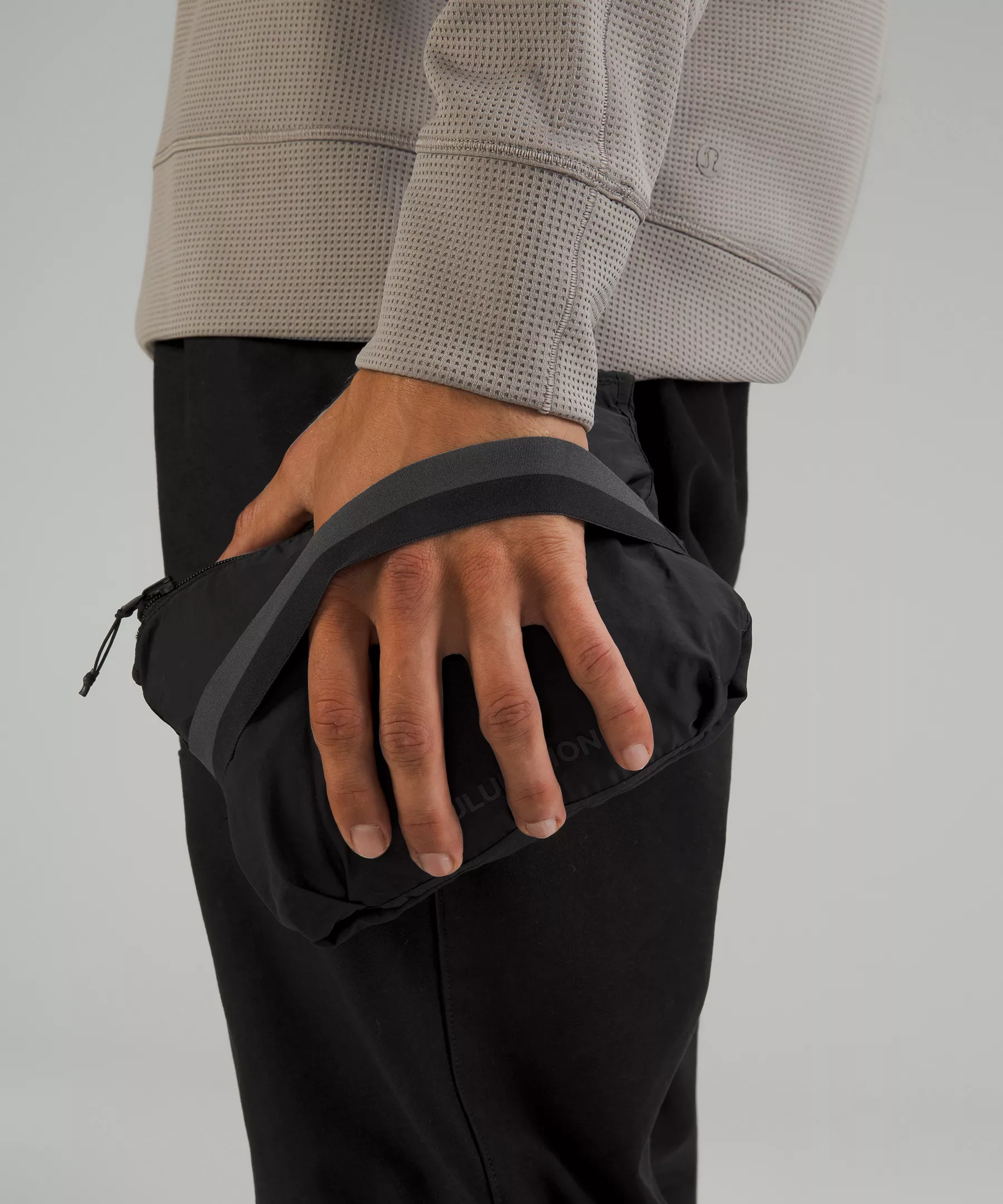 - Packs into the internal pocket to create a compact pouch. Slip the elastic over your hand for easy carrying