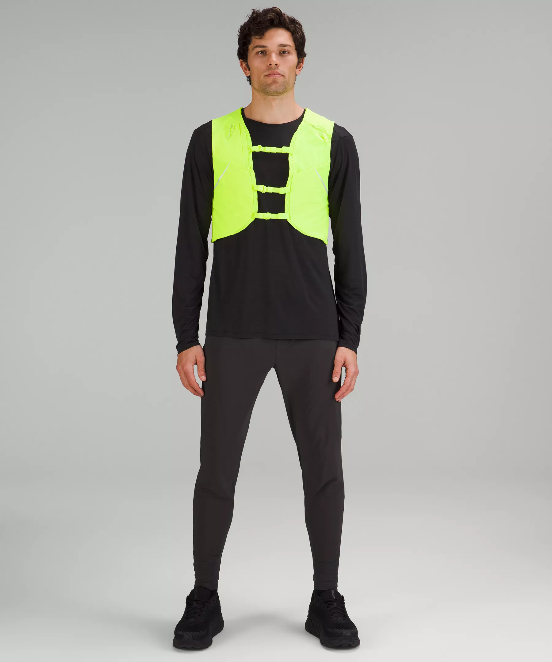 - Front drop-in pocket fits a 500ml hydration flask with a tie to keep flask in place