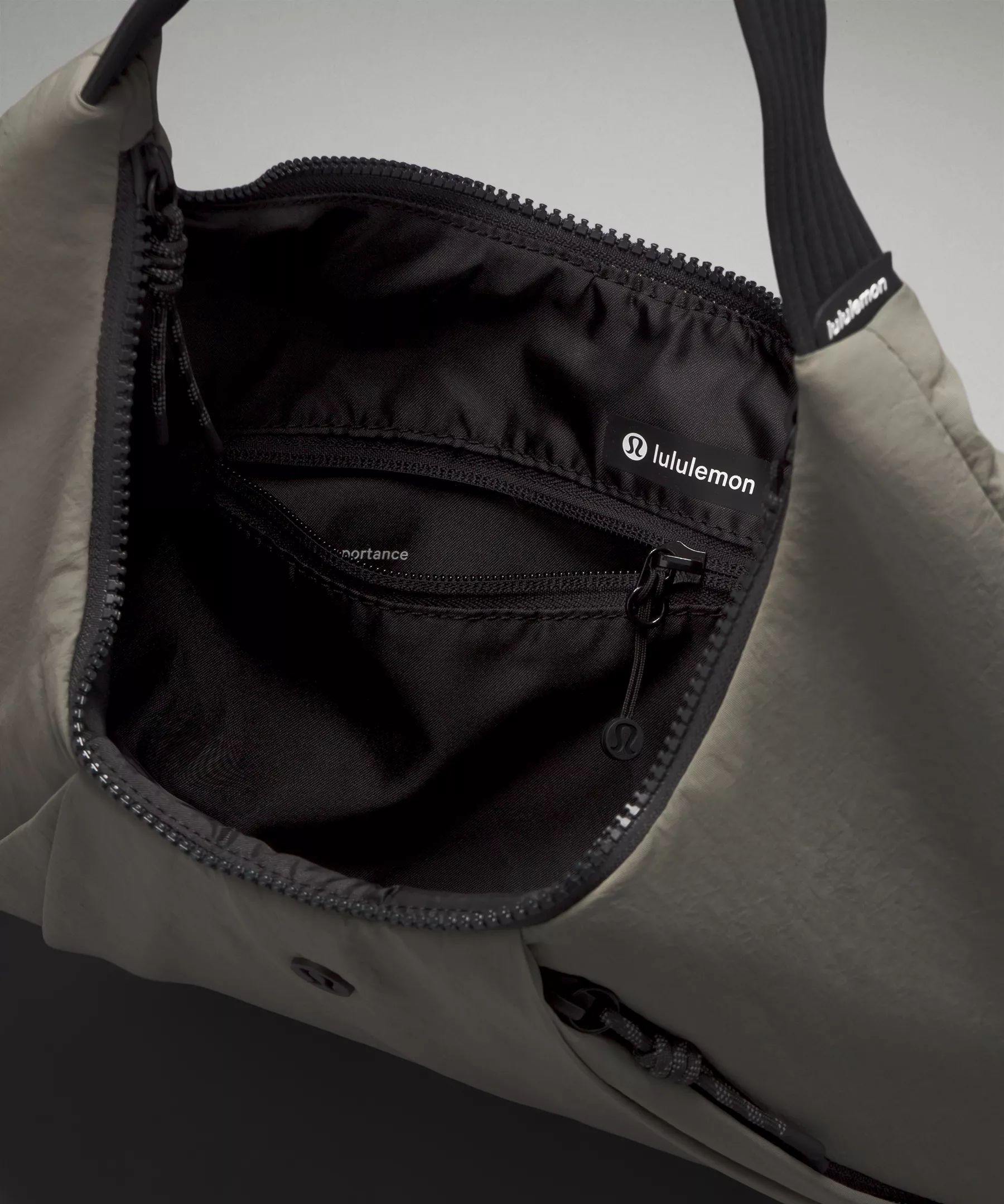 - Exterior zippered pocket with hidden phone sleeve