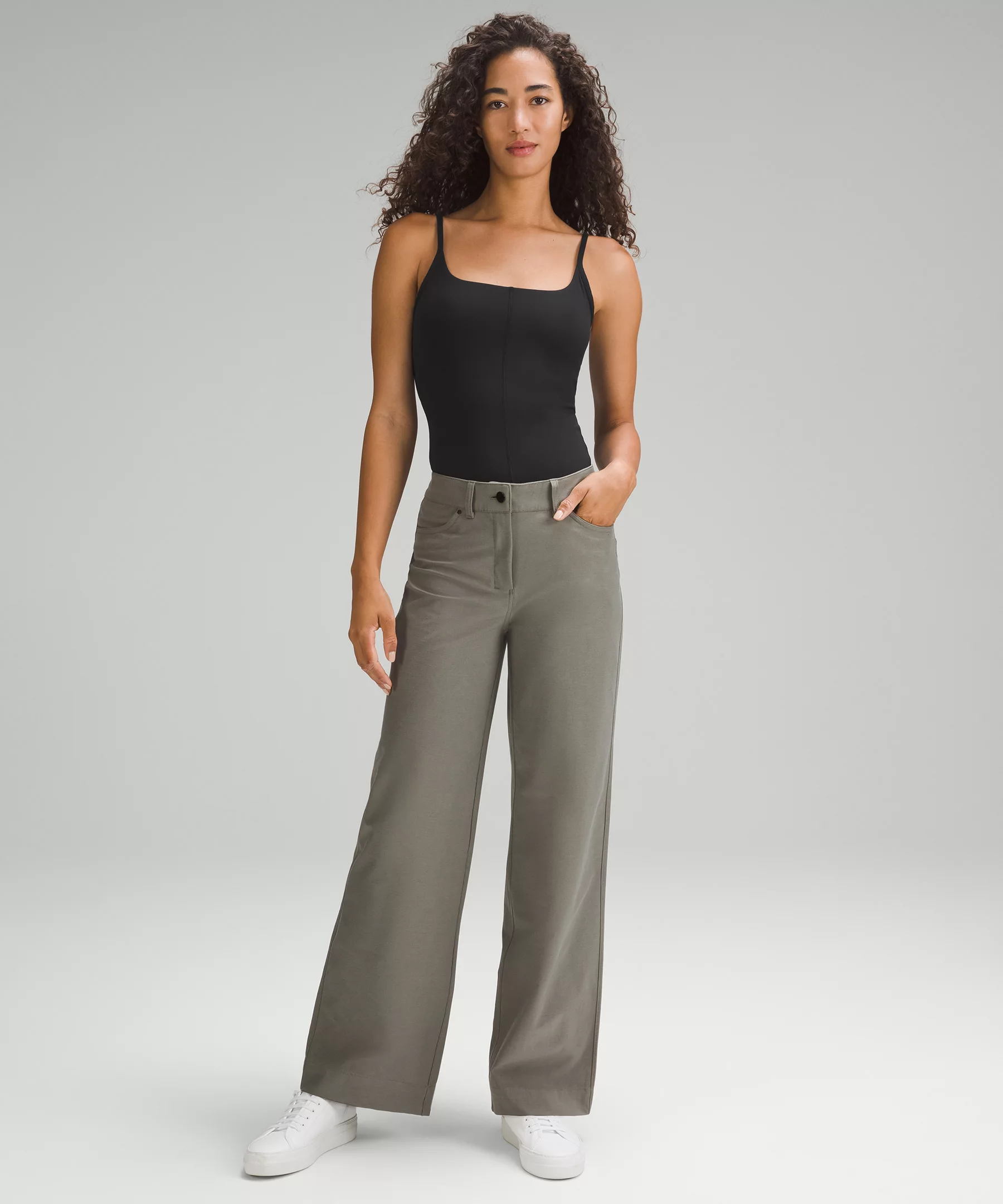 - Hip length sits below the waistband for moderate, everyday coverage