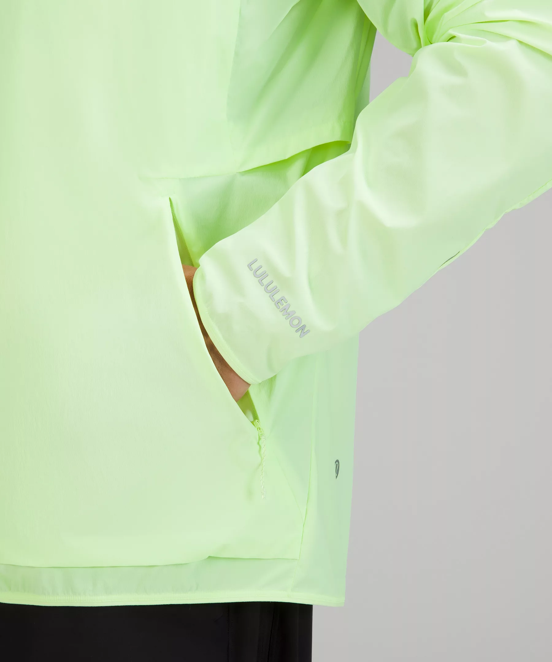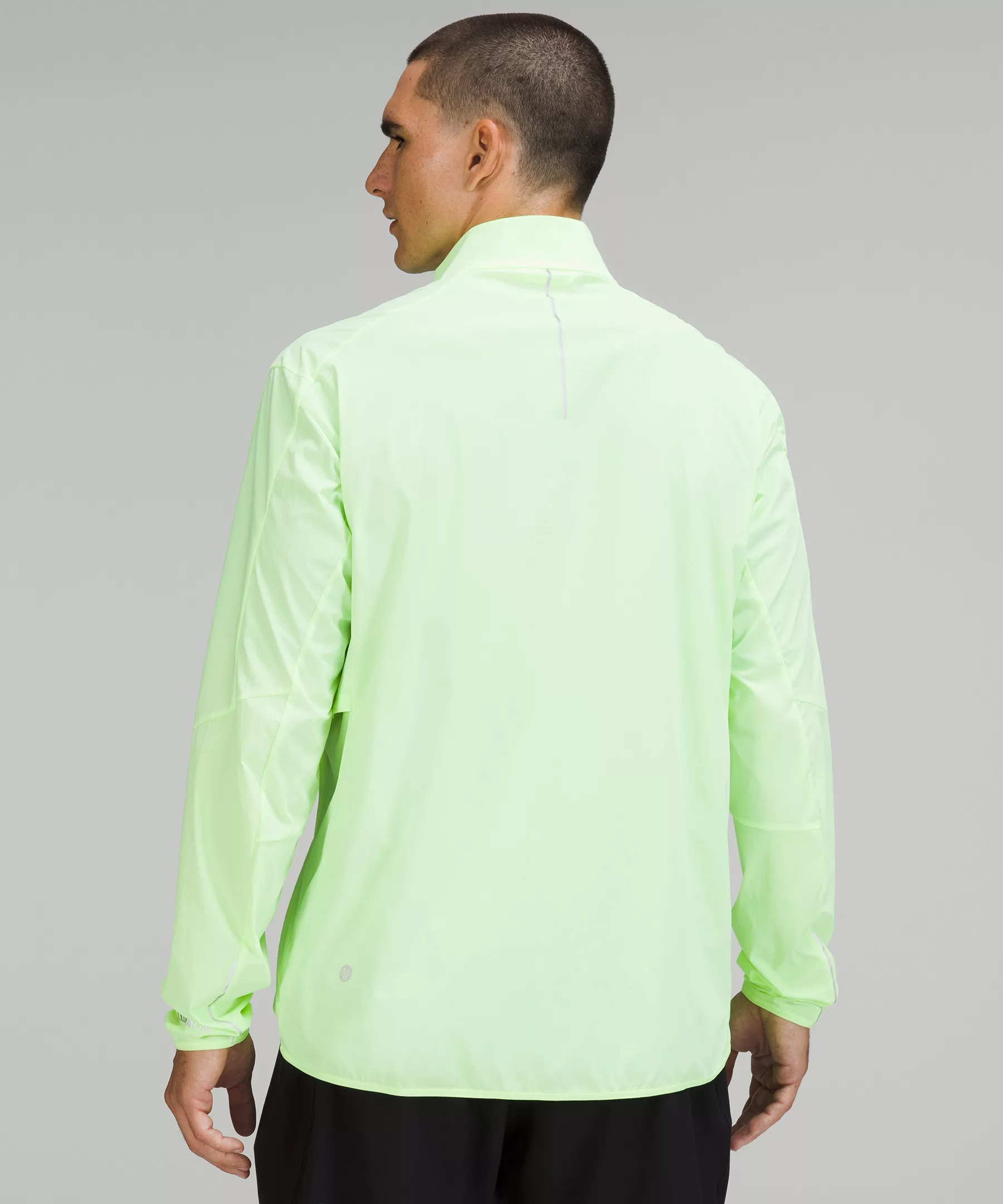 - A snap-button closure below the neck lets you unzip for extra ventilation while keeping the jacket closed as you run