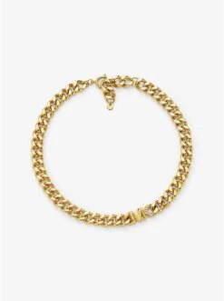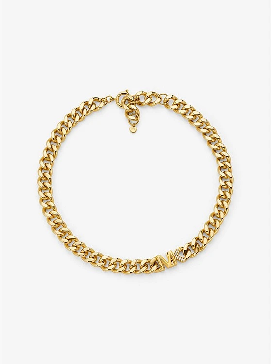 Cast in brass with a 14K gold plating, this eye-catching necklace will be your new go-to accessory. A luminous, pavé-encrusted “MK” charm is surrounded by high-shine curb links for easy glamour (and effortless layering). Wear it with the coordinating bracelet to complete the look.