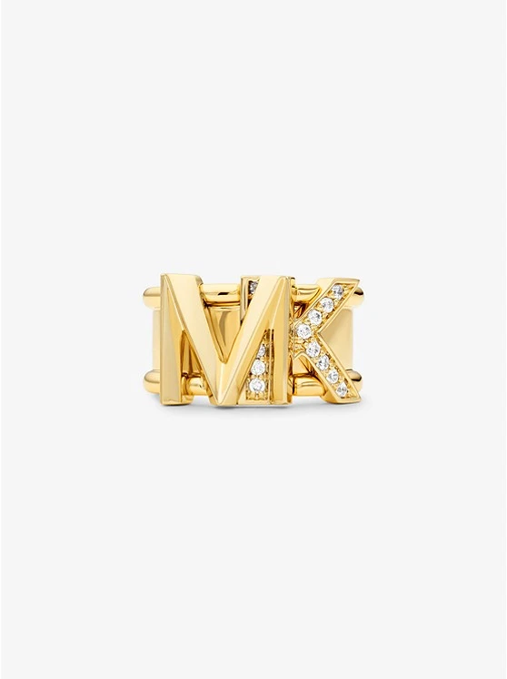 A bold accessory with endless versatility, this eye-catching ring is defined by the brand’s “MK” initials highlighted with sparkling pavé accents. Cast in brass, it’s designed in a thick, chunky silhouette for statement-making flair. Play up the maximalist aesthetic with complementing accessories.