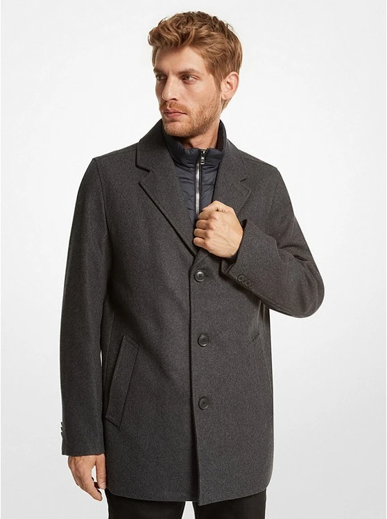 Warm and polished-looking, this wool blend coat is designed with a sleek 3-button fastening, notched lapels and a lining for smooth layering. It features a nylon bib that lends added warmth on chilly days. Team it with sharp tailoring or casual denim on the weekend.