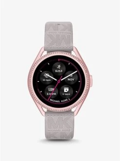 Sport-luxe style: featuring a logo-embossed strap, our Michael Kors Access Gen 5E MKGO 2 smartwatch will effortlessly complement your on-the-go, active lifestyle. Designed from lightweight pink-tone aluminum and powered by Wear OS by GoogleTM, this pave-accented timepiece is equipped with estimated heart-rate tracking, payment methods, a built-in speaker for Bluetooth-enabled calling and more to keep you connected to your daily goals. The multiple display faces can be changed for the ultimate in customization.
