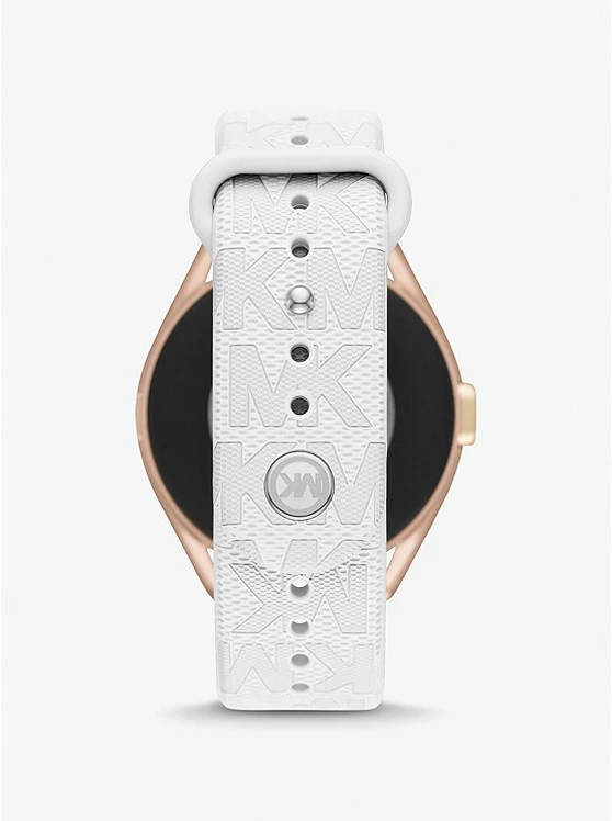 Sport-luxe style: featuring a logo-embossed strap, our Michael Kors Access Gen 5E MKGO 2 smartwatch will effortlessly complement your on-the-go, active lifestyle. Designed from lightweight rose gold-tone aluminum and powered by Wear OS by GoogleTM, this pavé-accented timepiece is equipped with estimated heart-rate tracking, payment methods, a built-in speaker for Bluetooth-enabled calling and more to keep you connected to your daily goals. The multiple display faces can be changed for the ultimate in customization.