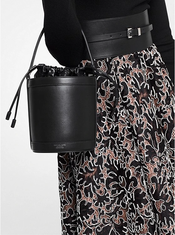 Rich Italian leather lends a luxurious look and feel to the season’s coveted Audrey bag. Designed in a shapely bucket silhouette, it features a structured top-handle and hints of polished hardware for a chic and understated finish. Wearable from day to night, this suede-lined handbag will lend effortless polish to every look.