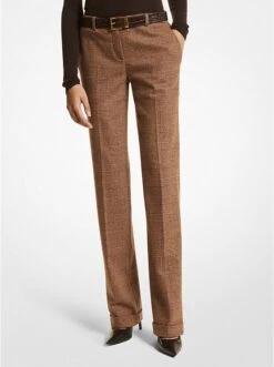 A sophisticated wardrobe staple with a refined edge, our Carolyn trousers return in a timeless glen plaid pattern for fall. Defined by smart, softly pressed pleats, this pair is meticulously tailored in Italy from stretch flannel. It features a straight fit and cuffed legs that look especially chic with sleek pumps.