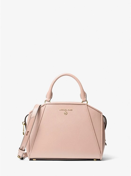 Our structured Cleo satchel is the epitome of polished ease. Complete with an adjustable crossbody strap, this Saffiano leather handbag is punctuated with gold-tone hardware that highlights its architectural silhouette. Reach for it to carry your tablet, wallet, phone and more.