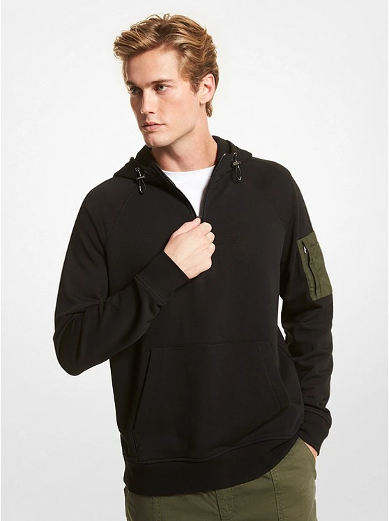 Casual with an air of sportiness, this half-zip hoodie is crafted from a soft, mid-weight cotton blend. A zip pocket at the sleeve creates subtle contrast, while the relaxed fit ensures it’ll layer easily over T-shirts and more. Wear it with pants, shorts and everything in between.