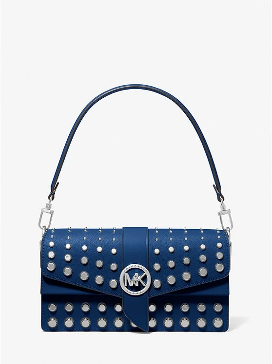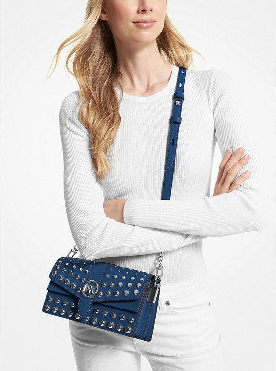 Consider our Greenwich shoulder bag the quickest way to make a chic statement. The combination of Saffiano leather and polished studs feels at once edgy and modern, while interchangeable shoulder straps complete the eye-catching style with added versatility. We think it’s the ultimate finishing touch to create a bold look.