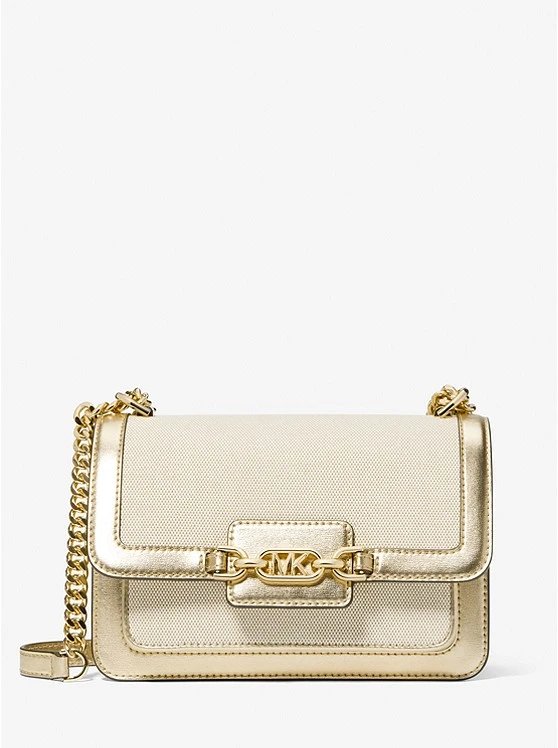 A smart and polished piece for every day, this canvas Heather shoulder bag is designed in a modern fold-over silhouette with metallic accents and branded hardware for a novelty finish. It’s perfectly sized to fit your daily essentials, with inside slip pockets for tucking your phone and card case.