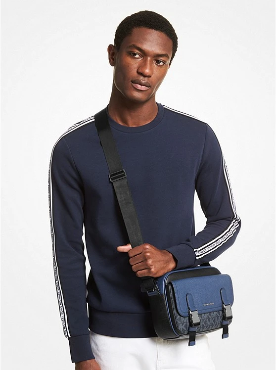 This Hudson bag is a utilitarian take on the sleek and compact original. Equipped with buckle straps for added security, this style features a combination of pebbled leather and Signature-print canvas panels with multiple exterior pockets to keep small items near. The central zip compartment is spacious enough to carry your phone, wallet and other key essentials. Wear it crossbody or slip it into your suitcase when traveling.