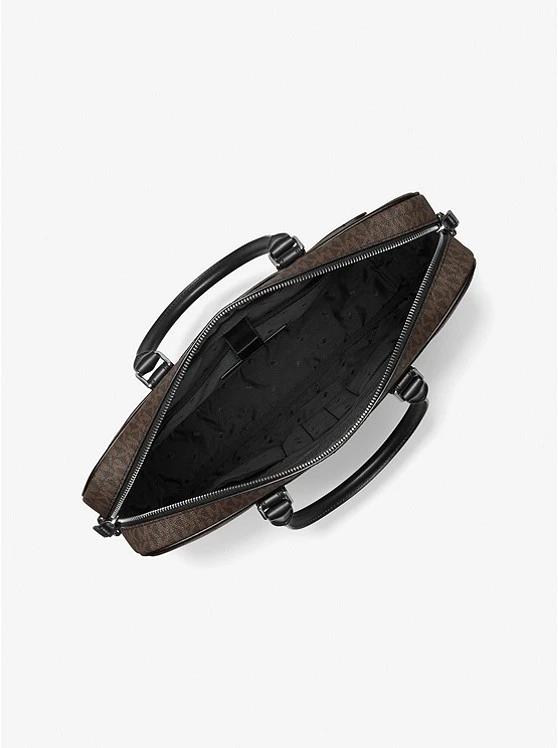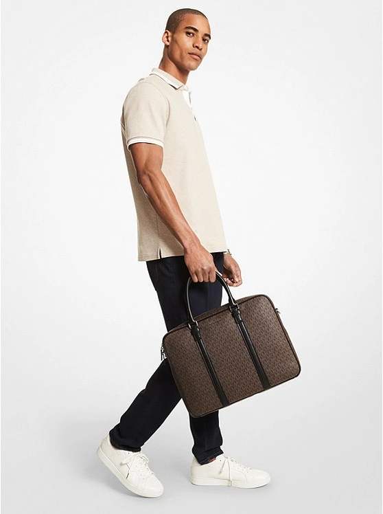 Update your office-ready accessories with the Hudson briefcase. Crafted from our Signature-print canvas with smooth leather trim, this sleek carryall offers a generous interior equipped to hold your tablet, important documents, phone and more. Carry it by the top handle between meetings, or wear it crossbody for hands-free ease while commuting.