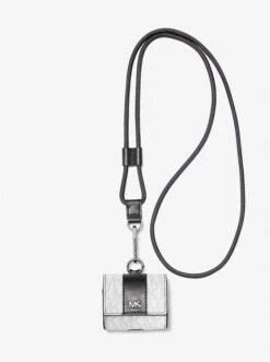 Organized in style: our Hudson case Apple AirPods Pro® carrier redefines on-the-go ease, with the brand’s allover “MK” print and logo plaque. A polished clasp fastening makes it easy to carry in hand or attach to your favorite tote bag. The detachable lanyard strap gives you even more ways to wear.