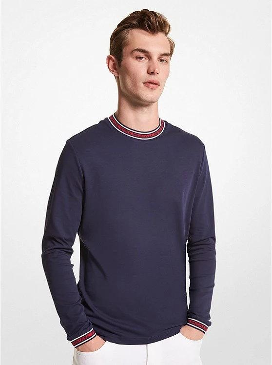 No wardrobe is complete without lightweight layers like this crewneck sweatshirt. Knit from cotton, it’s finished with logo tape trim at the neckline and cuffs for an athletic-inspired touch. Wear it alone or layered under a jacket.
