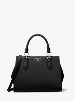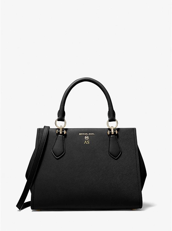 A compact companion with enough room for all the essentials, our structured Marilyn satchel is the epitome of polished ease. It features the brand’s initials and opens to a lined interior with dedicated pockets for your phone, wallet and other small items. Attach the smooth leather strap to wear it crossbody.