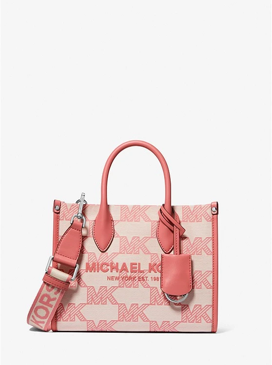 Whether you’re touring a new place, headed to a birthday picnic, or simply out and about, the Mirella will meet the moment. Fit all your essentials into this charming mini tote, which can be carried by the top handles or worn cross-body thanks to a removable strap. Cut from sturdy jacquard canvas that features our “MK” initials, it’s a reliable way to spice up any outfit.