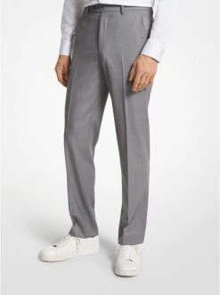 A lightweight wool blend with a subtle crosshatch gives these versatile trousers elevated appeal. Tailored with belt loops, a tab button closure and on-seam side pockets, they look sharp paired with the matching blazer or worn with a cotton shirt.