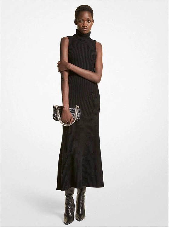 Crafted from Italian-made sumptuous cashmere, this turtleneck dress will lend a refined sensibility to your wardrobe for years to come. Ribbed detailing adds textural dimension, while a seamless figure-hugging silhouette descends to a slightly flared hem for an elegant finish. Elevate the look with slicked-back hair and the matching stiletto boots.