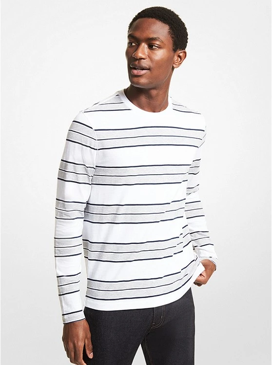 This cotton-jersey shirt is the perfect addition to your seasonal wardrobe. Contrasting stripes and a crew neckline add a sporty twist, while its slightly relaxed silhouette ensures styling versatility and ease of layering. Pair it with it chino pants and sweats alike.