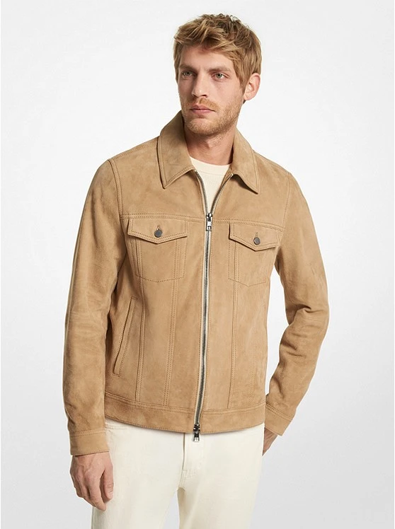 Crafted from buttery-soft suede, the classic Trucker jacket gets a minimalist update. Classic flap pocket styling at the chest and welt pockets at the sides give this style a utilitarian feel, while a full zipper closure offers a polished finish. We love it with a simple T-shirt and chinos.