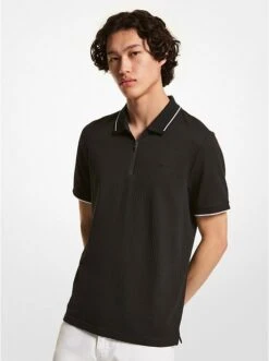 Waffle-knit cotton and contrast tipping along the collar and cuffs give this quarter-zip polo shirt a modern update. Team it with a blazer and pants for a smart daytime look, or with jeans and a jacket for a night out.