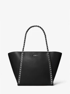 Braided chain-link hardware ups the luxe factor on our Westley tote bag. It has a spacious interior, plus a zipped pocket that’s perfect for stowing smaller essentials like your phone and keys. The handles are long enough to be worn comfortably over your shoulder.