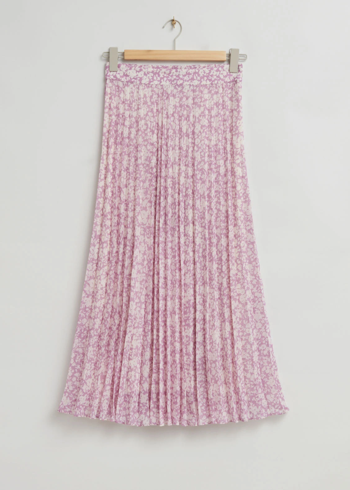 A-line midi plissé skirt crafted from chiffon. Featuring allover plissé pleats with a high waist with an elasticated back waistband, smooth in the front and invisible side zip and hook and eye closure in an a-line silhouette.