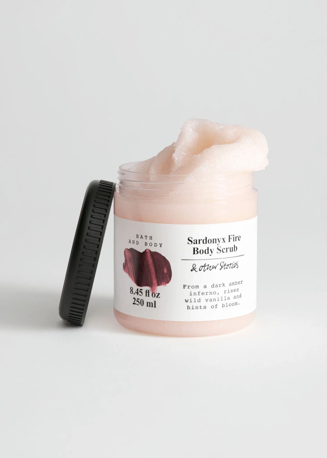 Smoothing sugar scrub that polishes skin to a silken texture and leaves it lusciously scented with dark amber, wild vanilla and hints of bloom. 250 ml/8.45 fl oz.Meadowfoam seed oil provides hydration and a rich feel, while the sugar particles exfoliate your skin and help to bind moisture at the same time.